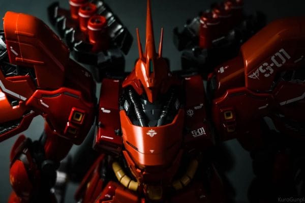 Gundam Sazabi memiliki ukuran lebih besar dengan desain mencolok yang terkesan mengintimidasi. Jenis ini juga menawarkan detail rumit seperti lengan yang menyerupai cakar dan mono eye.